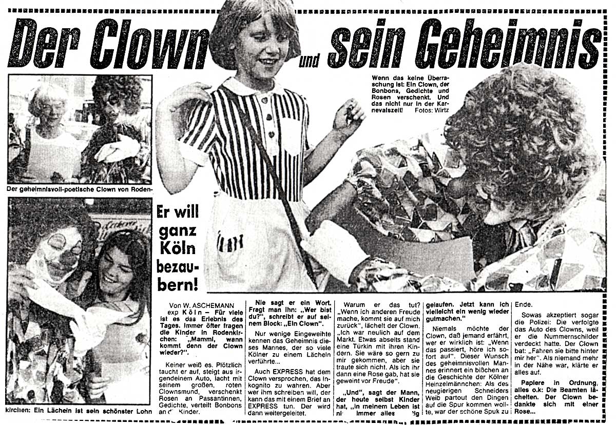 Zeitungsartikel über den geheimnissvollen Clown in Köln.